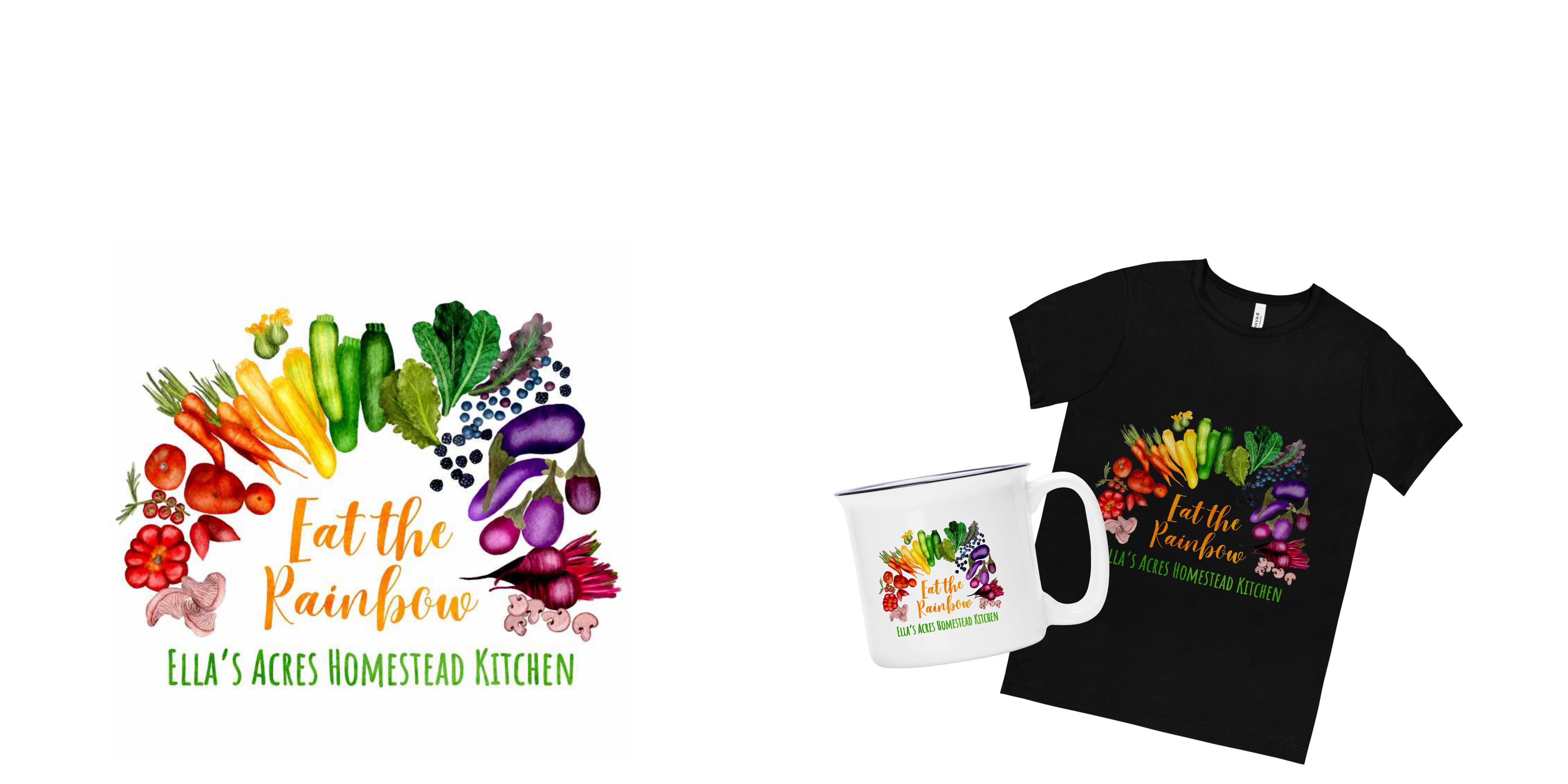 I illustrated a vibrant, detailed rainbow of vegetables in a watercolor style to be used on merchandise for a local farm-to-table restaurant and food truck.