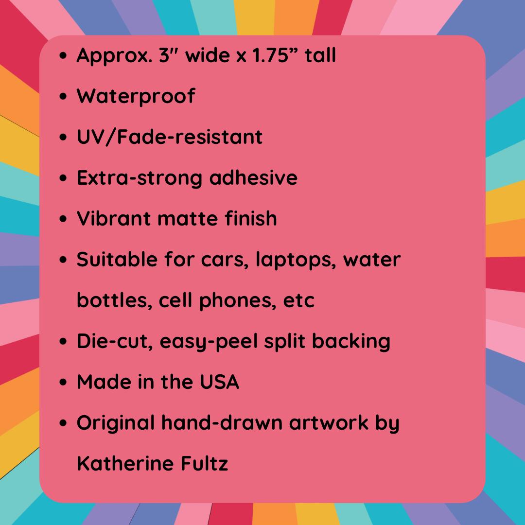 Printed on weatherproof, scratch-resistant vinyl with a matte finish, this sticker is tough enough for your reusable water bottle or your favorite protest sign. A favorite among rebels, gardeners, and sticker collectors alike, it’s a great conversation starter for anyone ready to plant seeds of change.