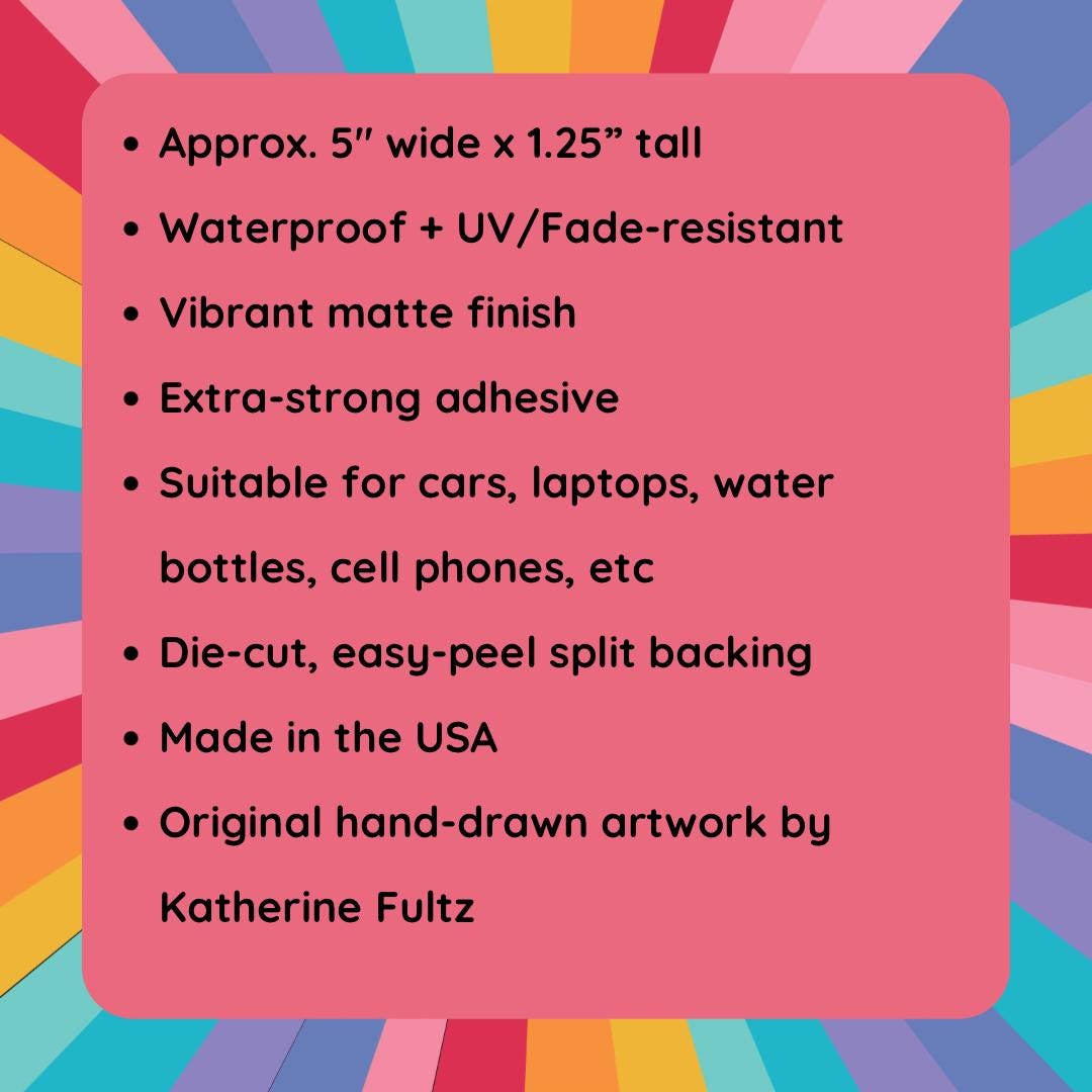 Printed on waterproof, weather-resistant vinyl, this sticker is built to last—whether you stick it on your car, travel mug, or favorite journal. At just over 5 inches wide, it makes a strong statement without taking up too much space. Ideal for feminists, book lovers, and anyone who loves an empowering quote with a pop of color.