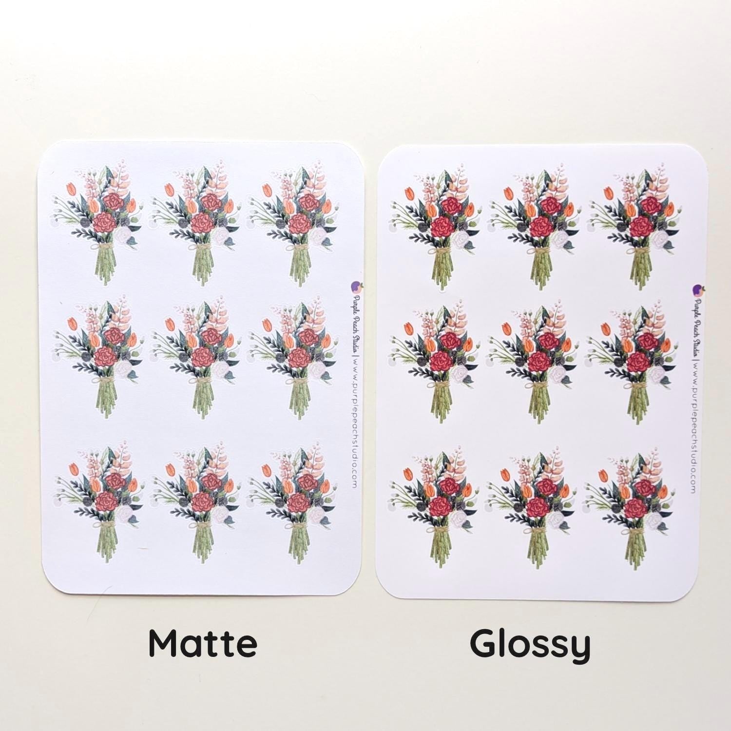 Each pack includes two kiss-cut 5x7" sheets, printed and cut in my cozy Upstate NY studio. Choose from glossy for bold shine, matte for a smooth finish, or matte removable if you prefer stickers you can reposition. Great for decorating notebooks, gifts, or adding a thoughtful touch to your correspondence.