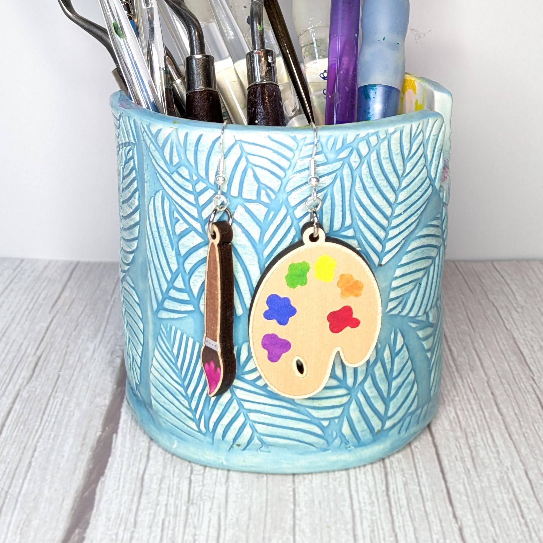 Laser-cut from sustainable maple veneer birch wood, these earrings are lightweight, eco-friendly, and gentle on sensitive ears with nickel-free silver fishhook ear wires. Each piece is crafted with care to ensure comfort for all-day wear, whether you're in the studio, classroom, or just showing off your love for art.