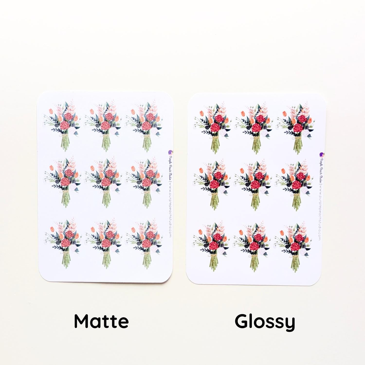 Add a burst of botanical beauty to your planner, journal, or snail mail with these hand-illustrated mini bouquet sticker sheets! Featuring the same cheerful floral design as the best-selling wooden bouquet pin, these petite stickers are perfect for flower lovers, stationery fans, and anyone who loves adding small, special touches to their daily routine.
