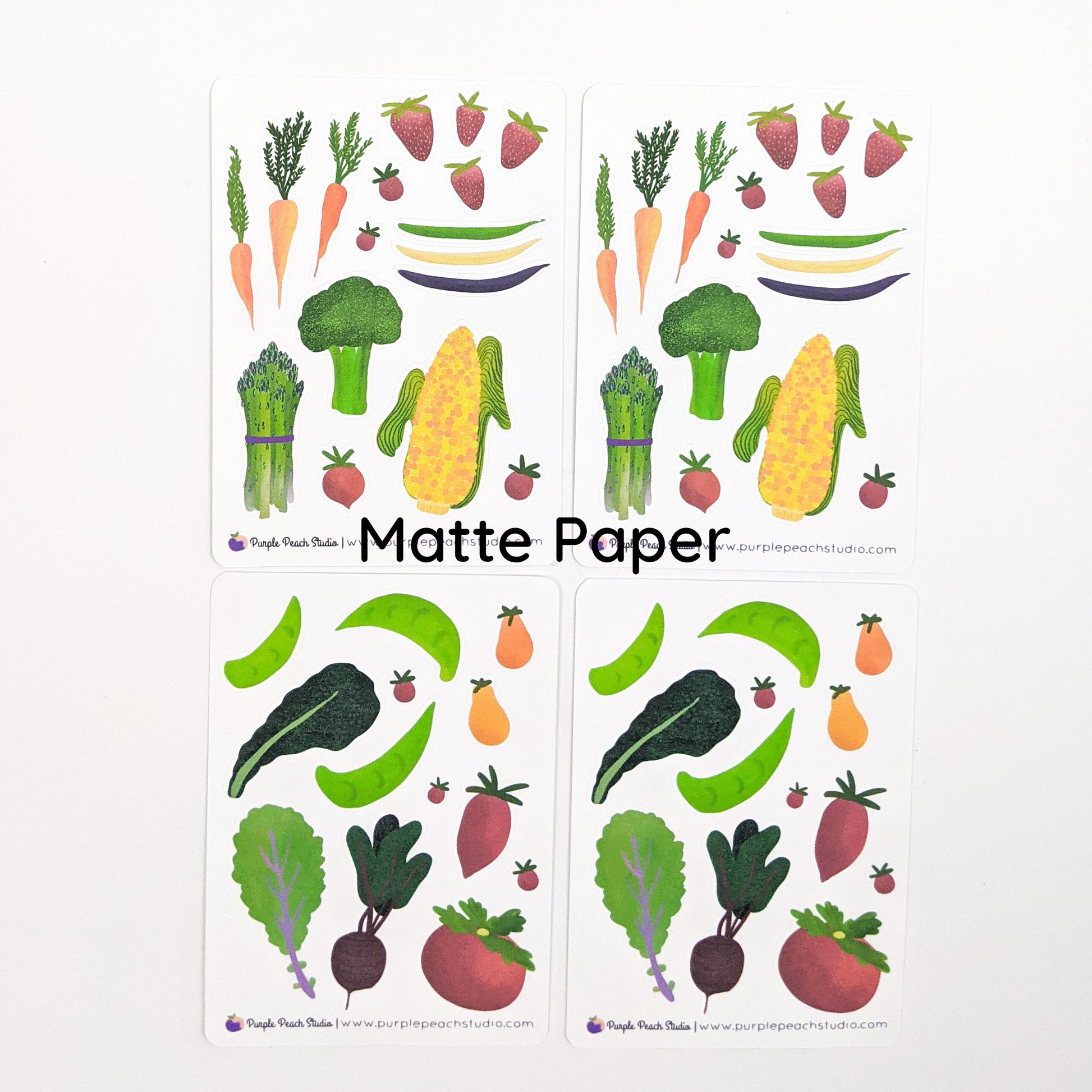 Bring a pop of farm-fresh color to your paper projects with this small veggie sticker sheet! Featuring mini hand-drawn illustrations of market favorites—like kale, tomatoes, snap peas, and strawberries—this sheet is perfect for planners, bullet journals, or meal-tracking spreads. Great for gardeners, foodies, and anyone who loves veggies with personality. Includes images of cherry tomatoes, a beefsteak tomato, yellow corn, lacinato and curly kale, carrots, snap peas, strawberries, a beet, asparagus, green beans, and broccoli.