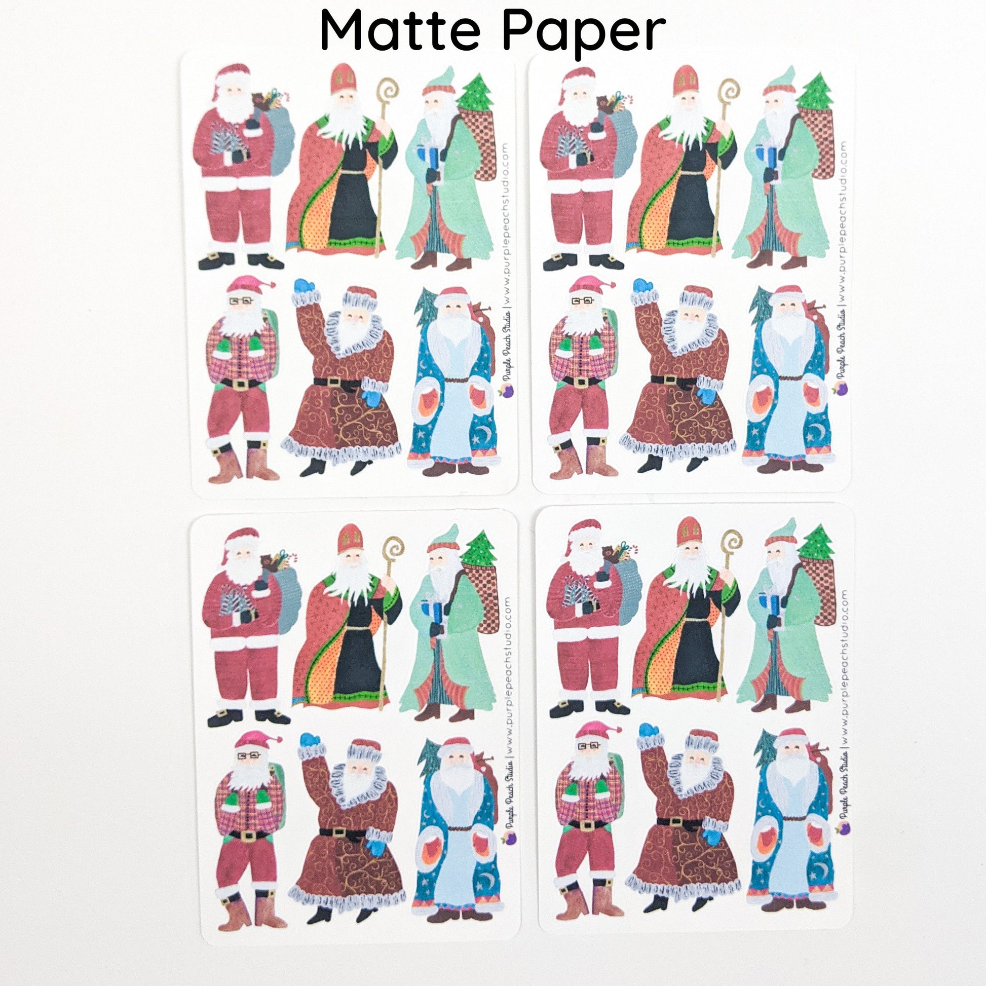 Perfect for embellishing holiday cards, decorating planner pages, enhancing scrapbook spreads, or tucking into a stocking as a festive treat. These Santas bring a touch of whimsy and warmth to your holiday season.