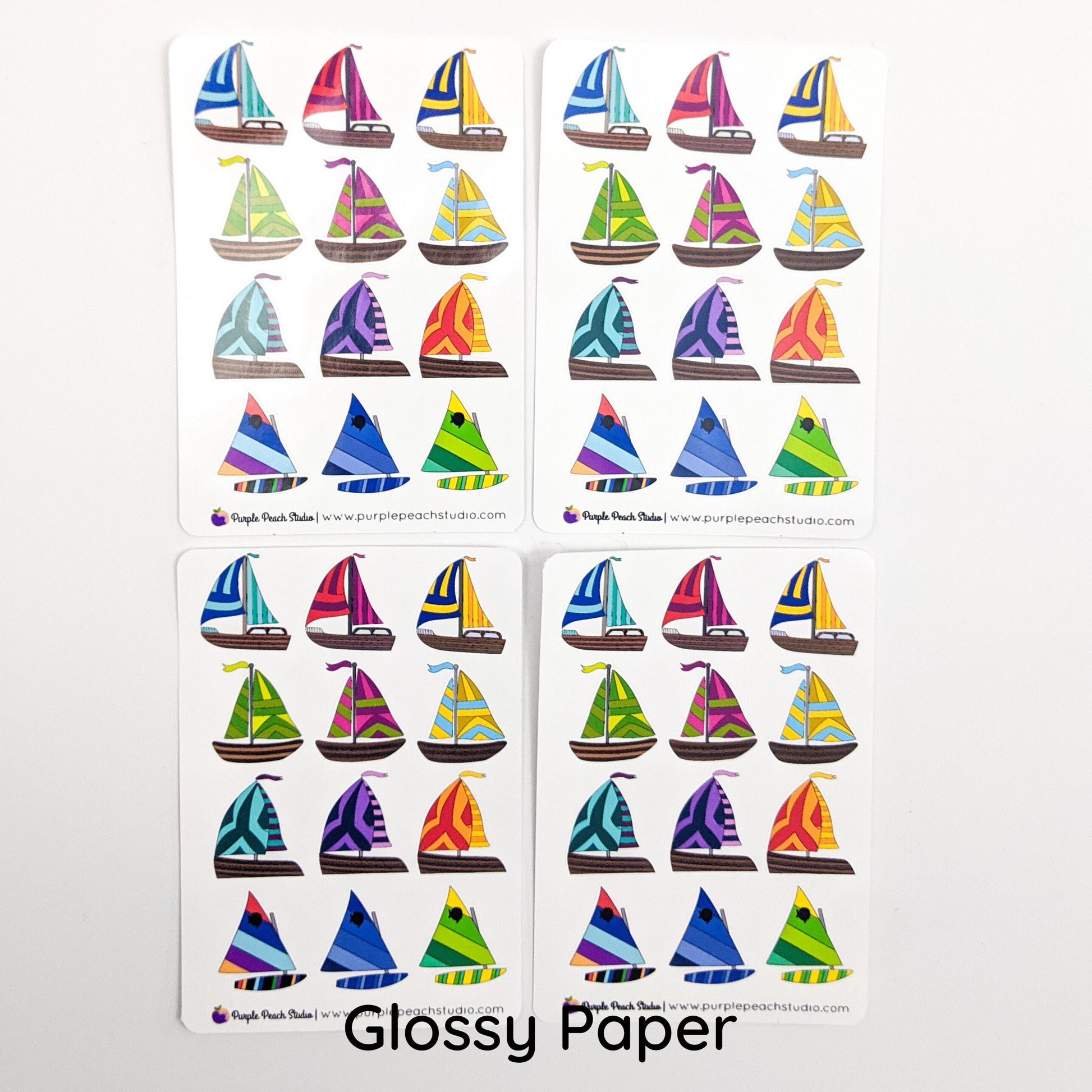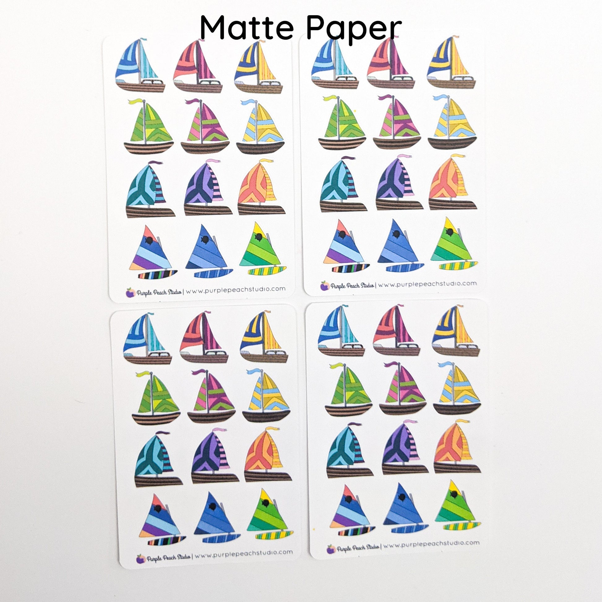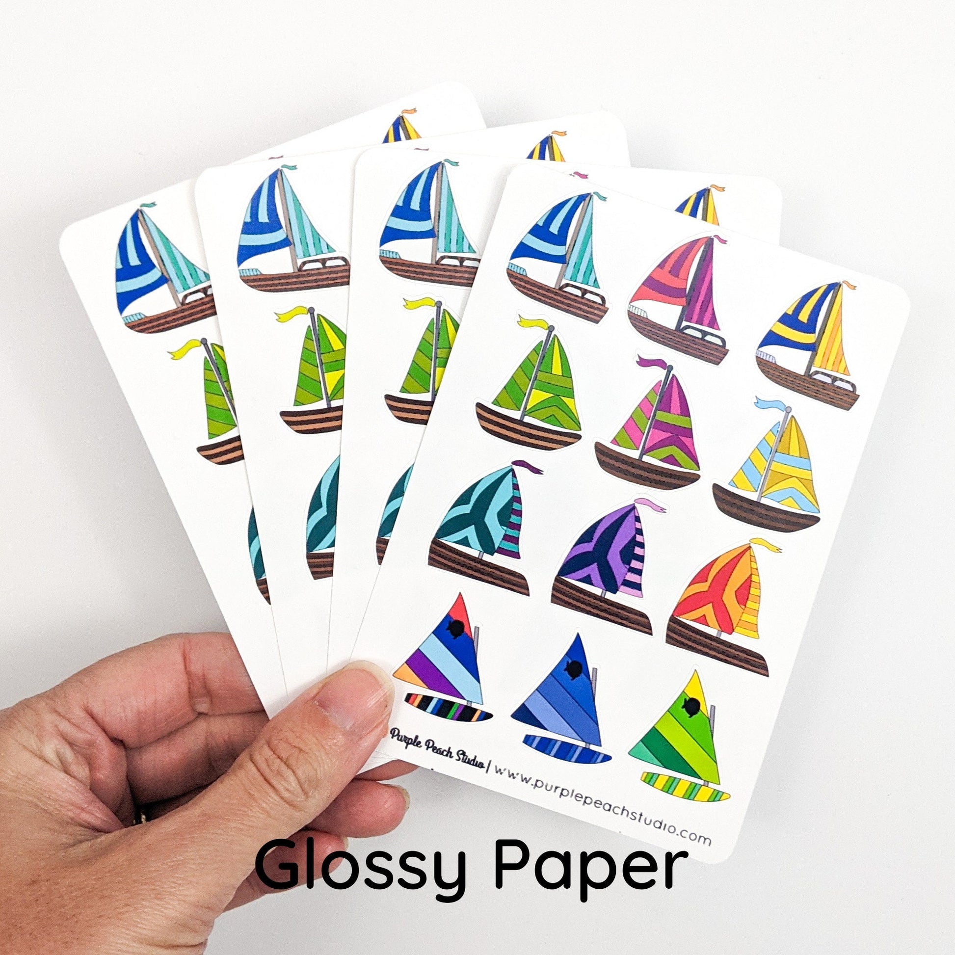 Sail the high seas in your planner, bullet journal, or scrapbook with these cute boat stickers! These windjammers have sails in fanciful colors, with designs inspired by real-life sailing ships. I hand-drew these sailboats before digitizing and coloring.