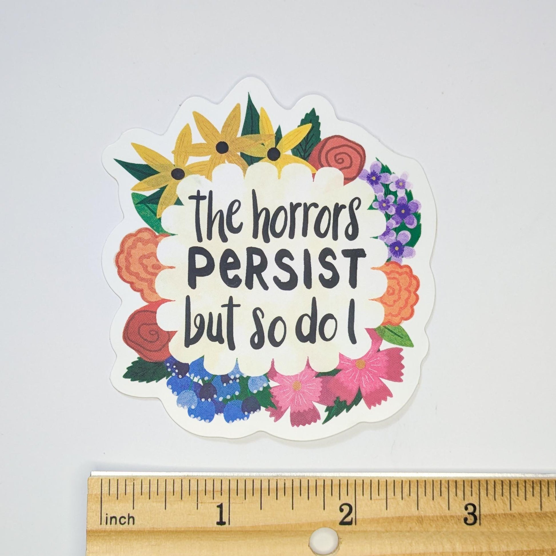 Inspirational Feminist Sticker | The Horrors Persist But So Do I
